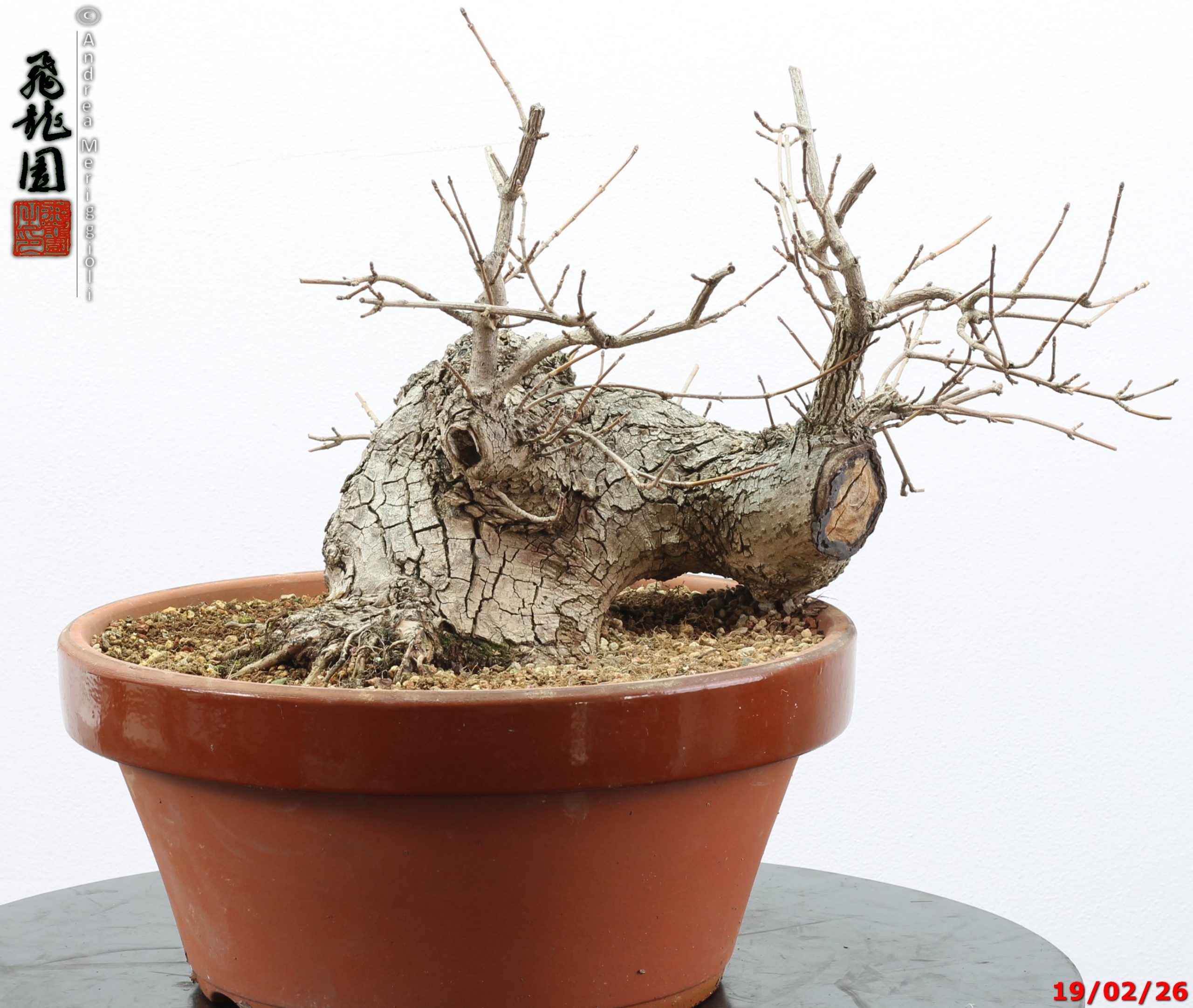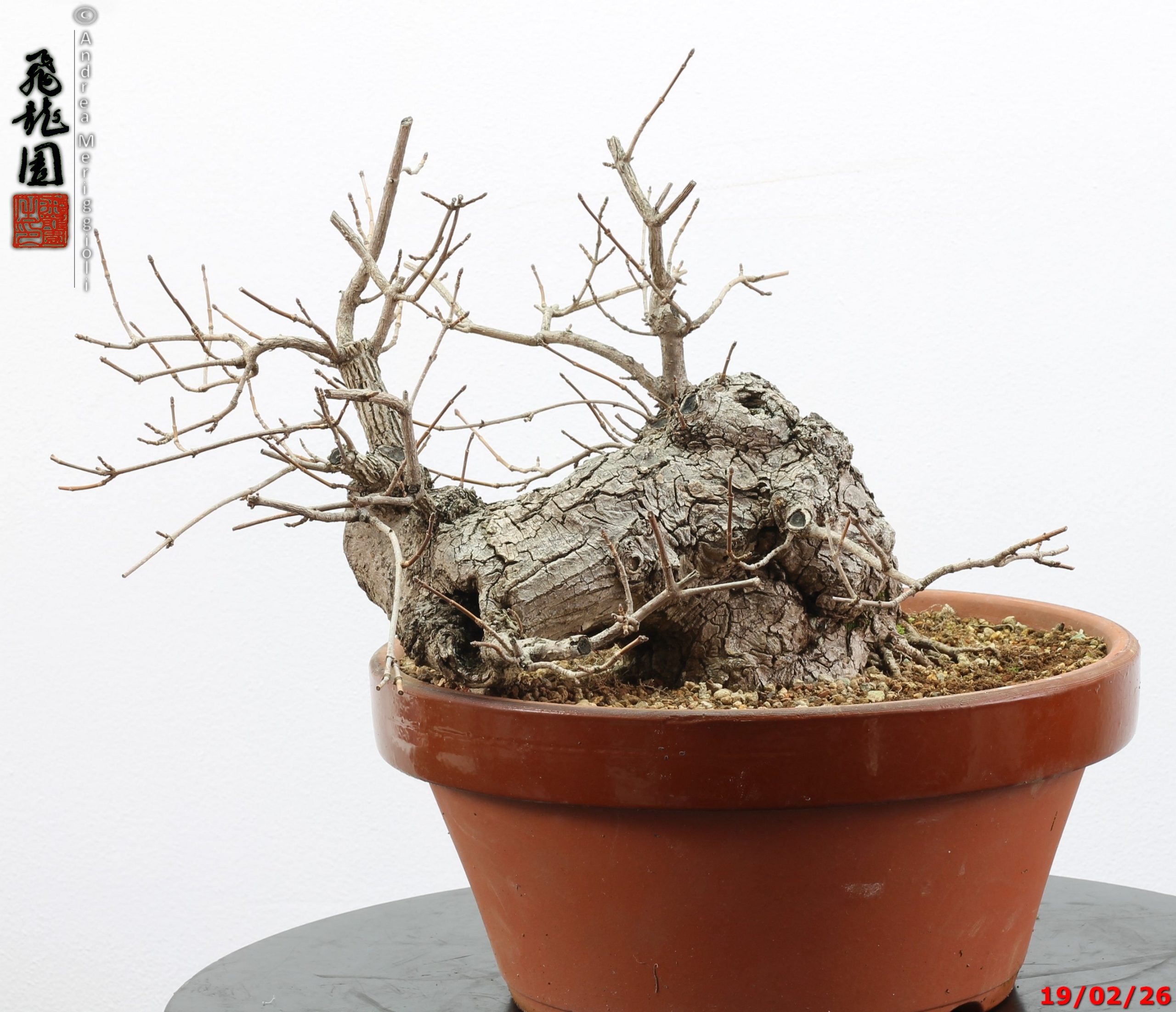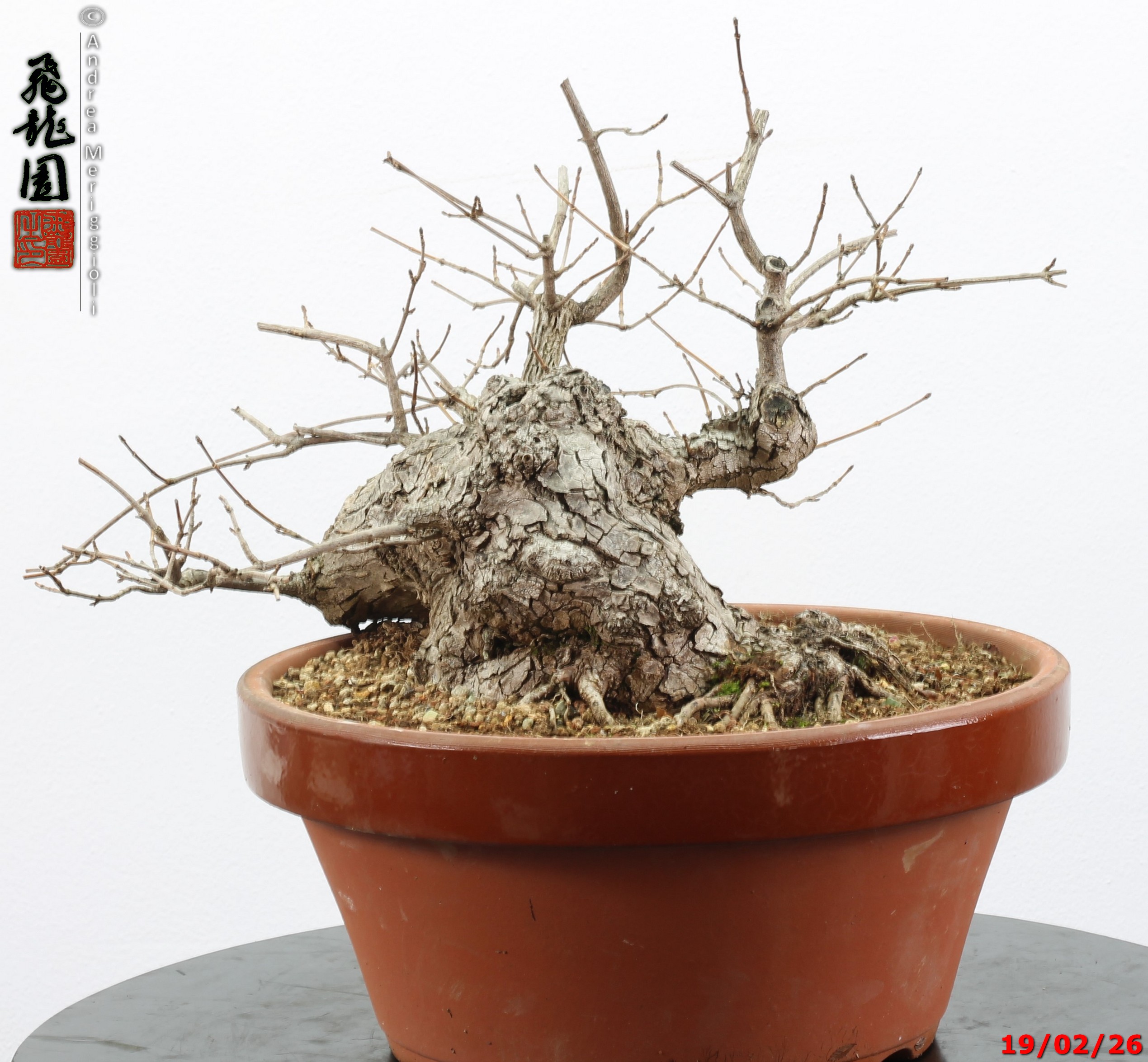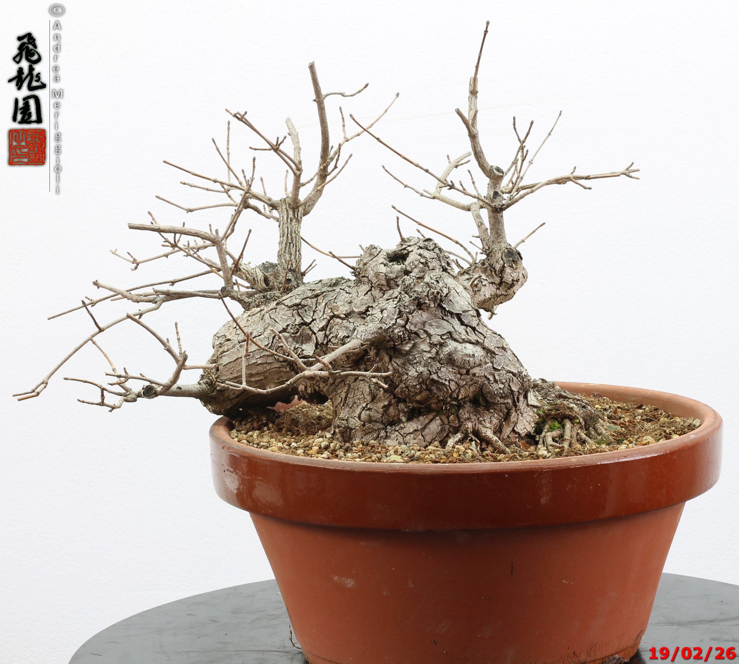 • Ulteriori informazioni: Bonsai di olmo campestre in stile semi cascata. Pianta con forte carattere