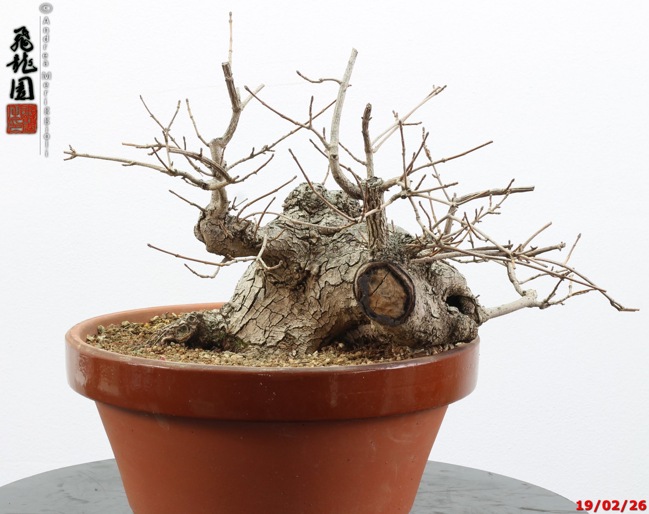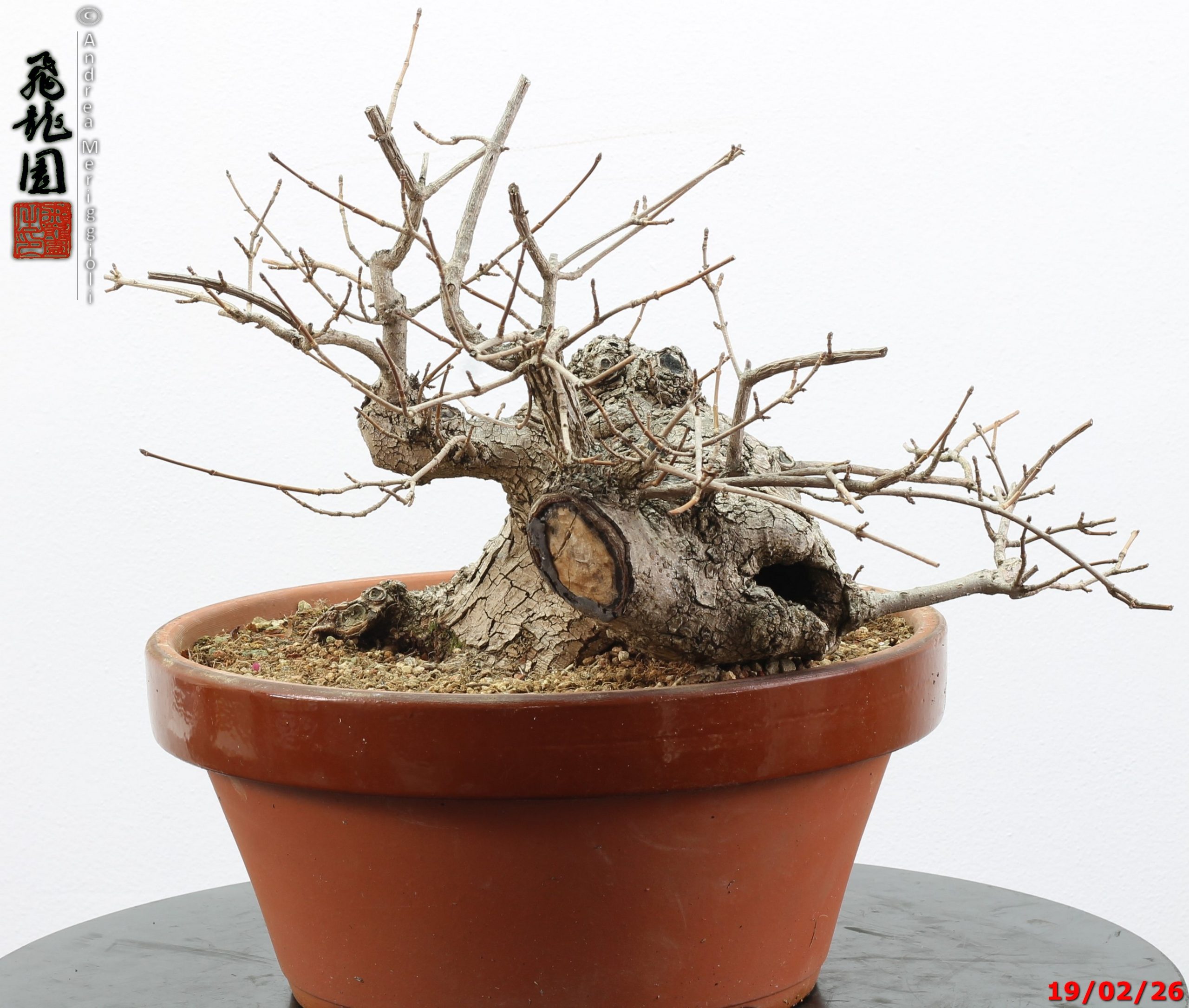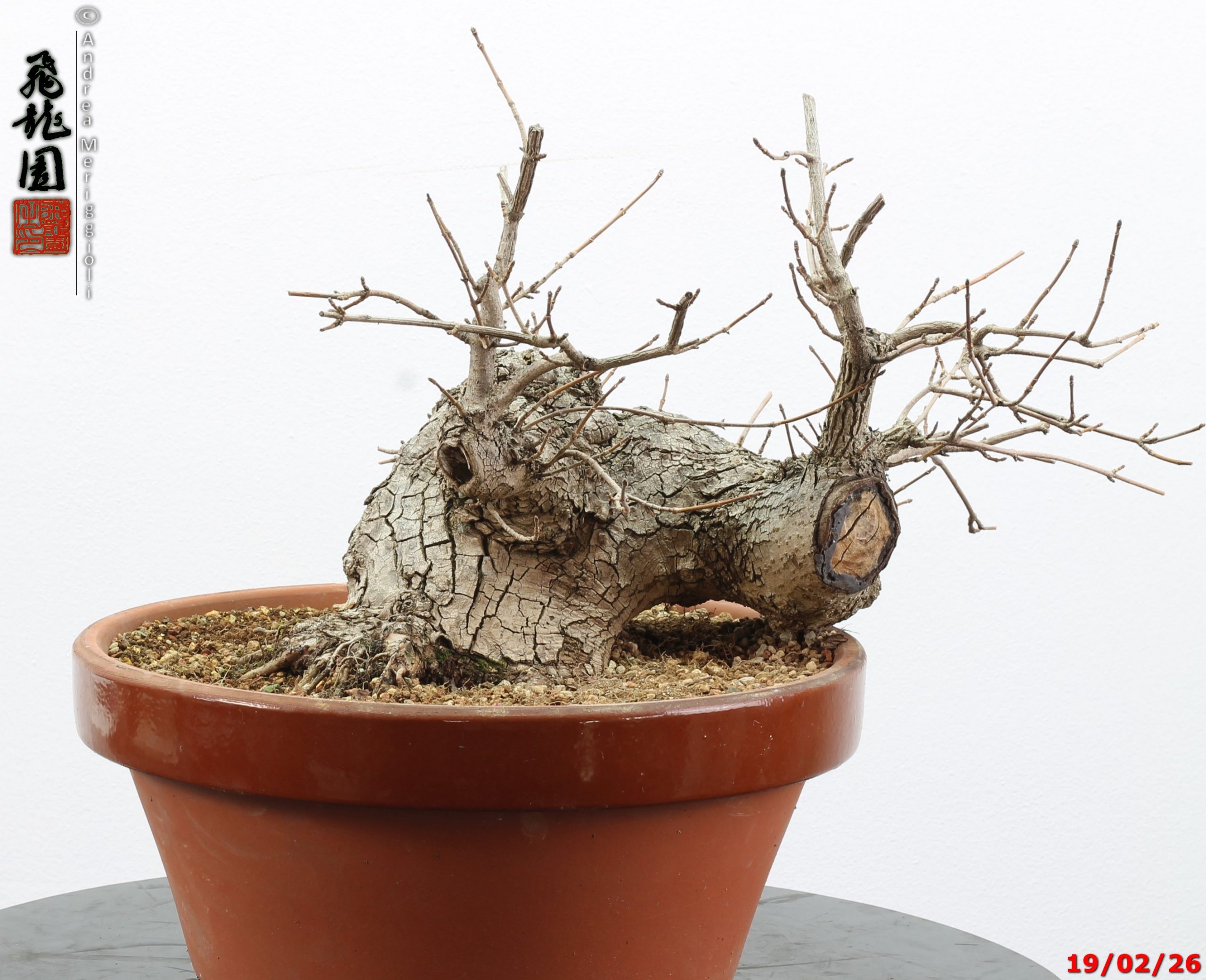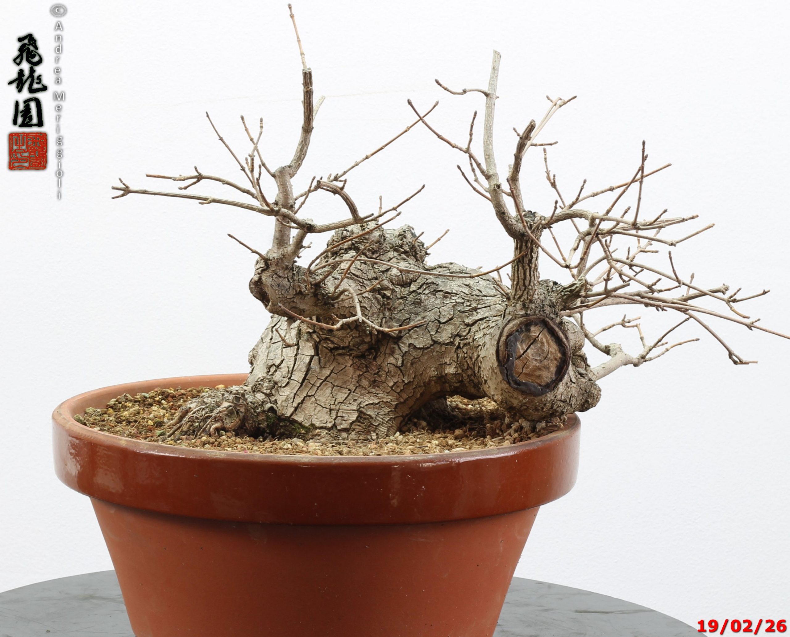 • Ulteriori informazioni: Bonsai di olmo campestre in stile semi cascata. Pianta con forte carattere