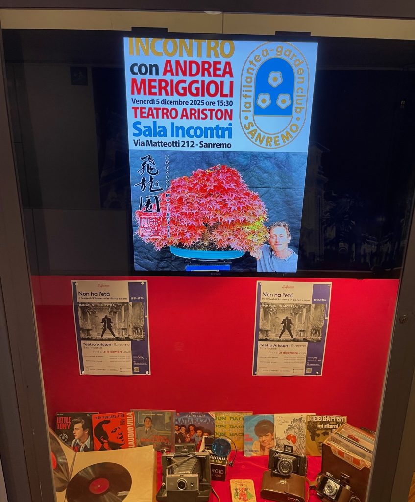 Venerdì 5 dicembre 2025, nella prestigiosa cornice del Teatro Ariston di Sanremo, ho tenuto una conferenza divulgativa sul bonsai, inteso non solo come arte, ma anche come stile di vita. Un evento unico nel suo genere dove per la prima volta il bonsai raggiunge un pubblico così ampio e di cui sono onorato di esserne stato il testimone, con la speranza di avvicinare sempre piu persone a questa affascinante arte.